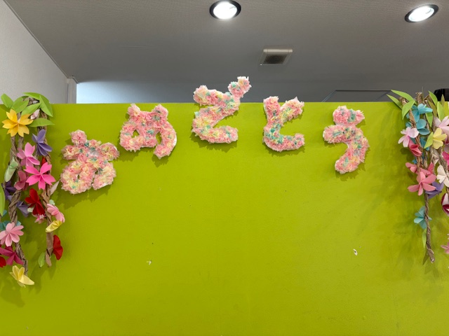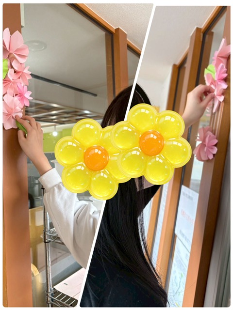 玄関にはお姉さんたちにサクラをイメージして飾りつけをして貰いました❤️