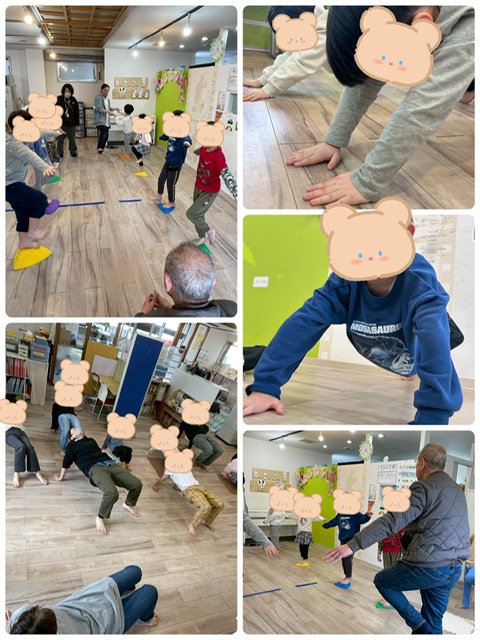 朝の感覚統合運動は日替わりメニューで楽しみながら取り組んでいます!