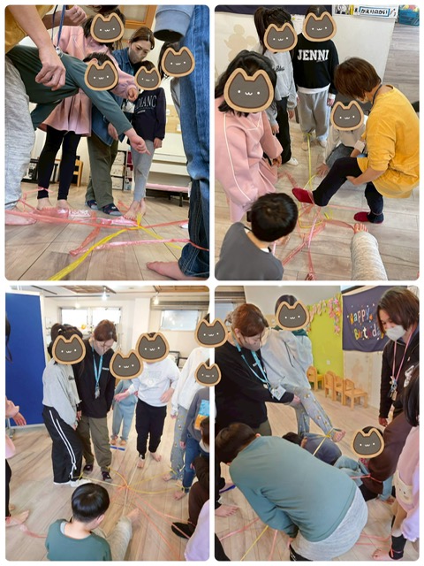 など自然と皆で協力し合いながらレクではなく自由遊びの時間の様子だったのですがほぼ全員参加し、大盛り上がりでした😆