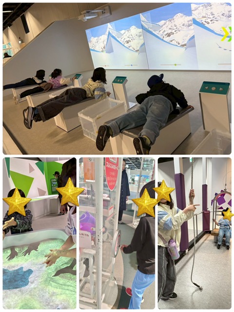 ボブスレーやカーリングに挑戦したり、てこの原理で重さの感じ方の違いを感じたり…