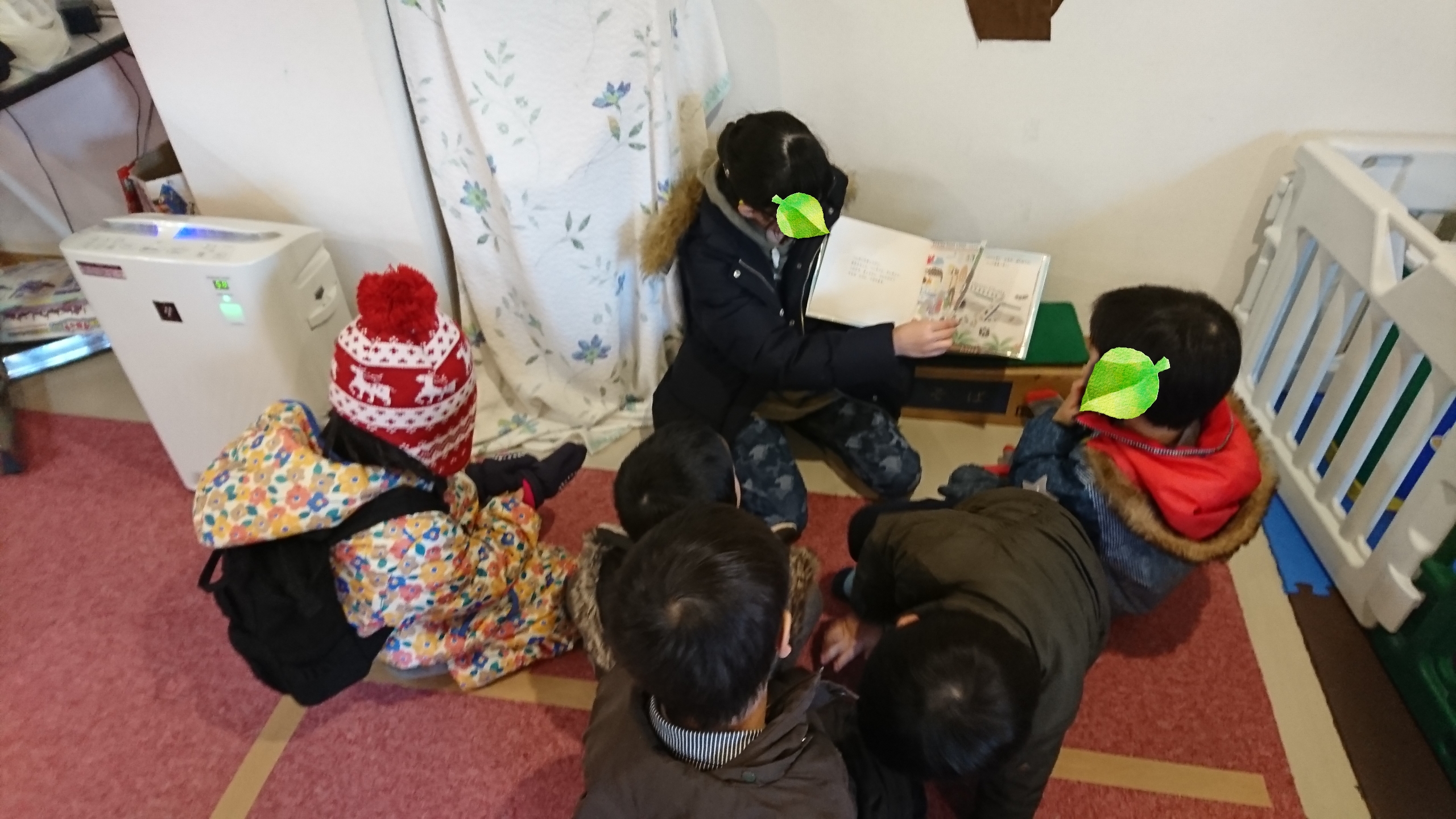 帰りの時間、お姉さんによる読み聞かせタイム。