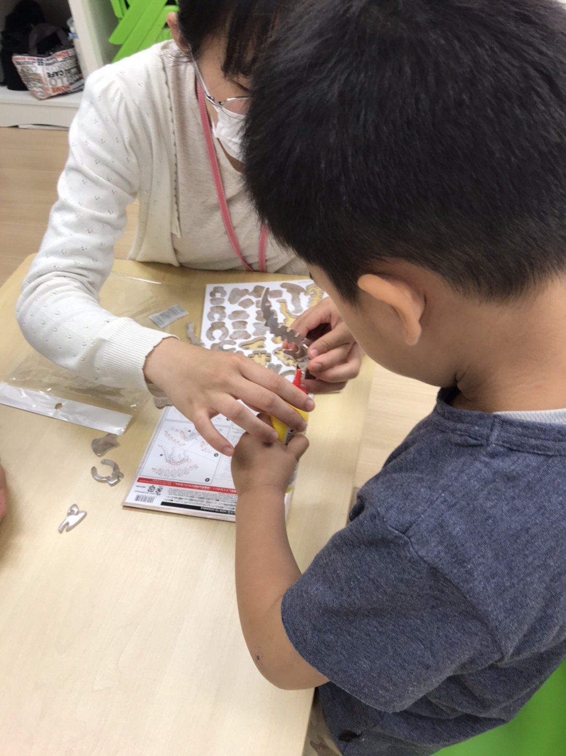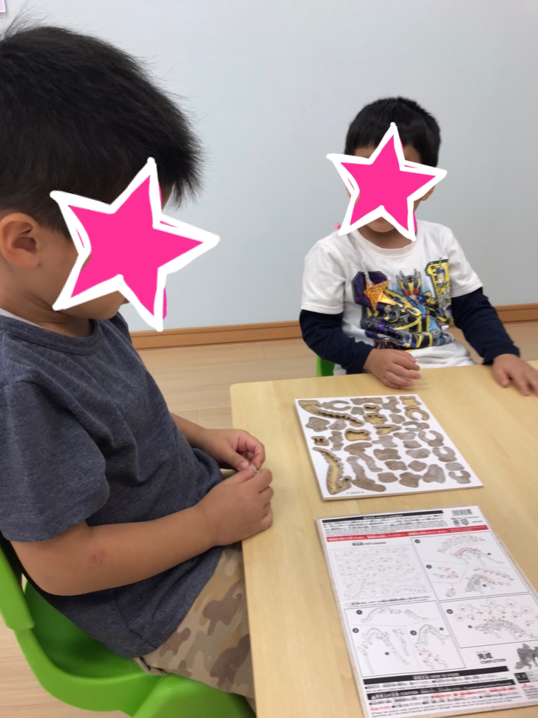 最近、この100均アイテム【恐竜の木製パズル】ブーム(≧▽≦)!!説明書を見ながら一生懸命取り組んでいます★★