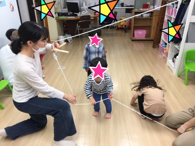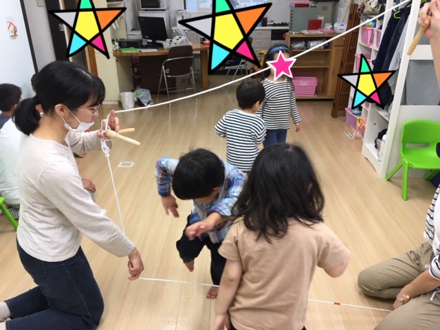 縄跳びの縄に当たらないように、ジャンプしたり、くぐったりします(´ω`)★