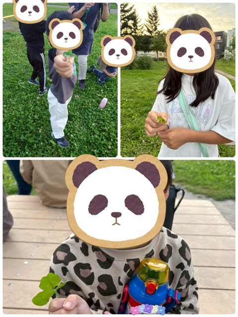 「四つ葉見つけたよ~🍀」「僕、私も見つけたい!」