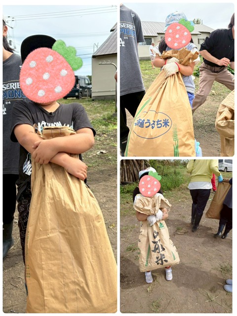 採れたお芋を袋に詰めて運ぼうとすると「俺が持ってやるよ」と一人の男の子が……すると「わたしも!わたしも!」と小さな女の子たちまで皆で運んでくれました💕