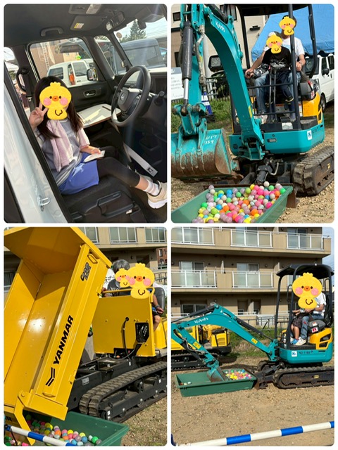 こちらのお祭りではなんと、働く車に実際に乗せて頂き、作業体験まで出来るというではありませんか👀これには男子チームが一気に目が💖になっていました(笑)