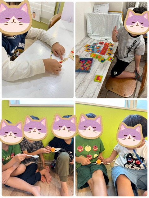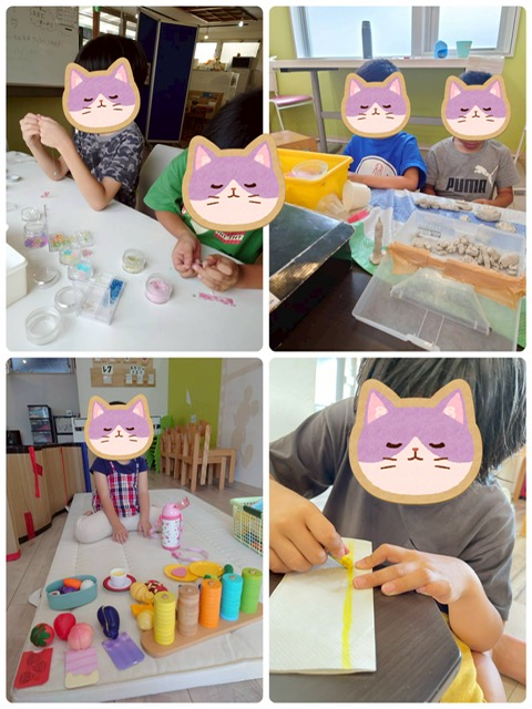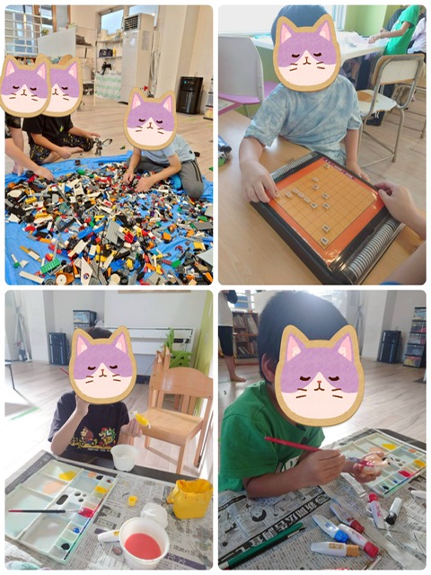 レゴや将棋、紙粘土で各々好きなものを作りそこに色付けしてと、レクさながらの遊びを子ども達自ら考案し行っています😁