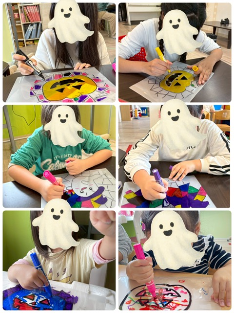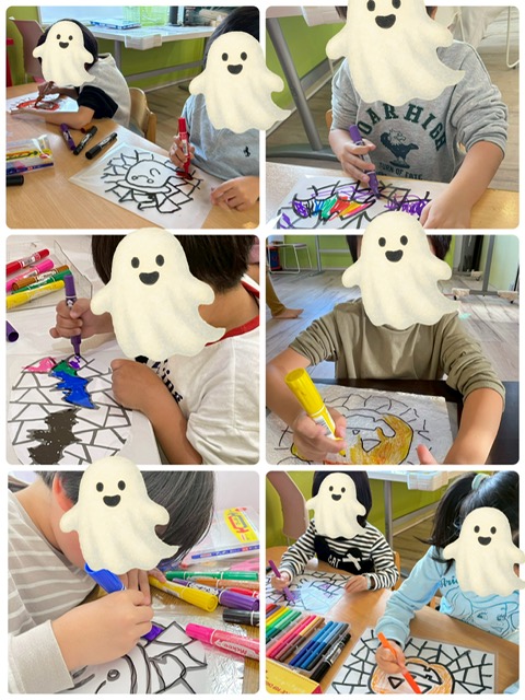 影を付ける子、あえて色を塗らない部分を作る子、顔を付け足す子、新たに模様を付ける子など様々でした💕