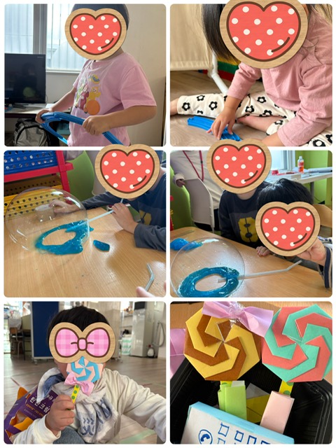 「どうやったらそんなに膨らませるの?」「こうやって隙間を作らないようにして優しく息を吹きかけていくんだよ!」等とても的確で素敵なやり取りをしていました☆