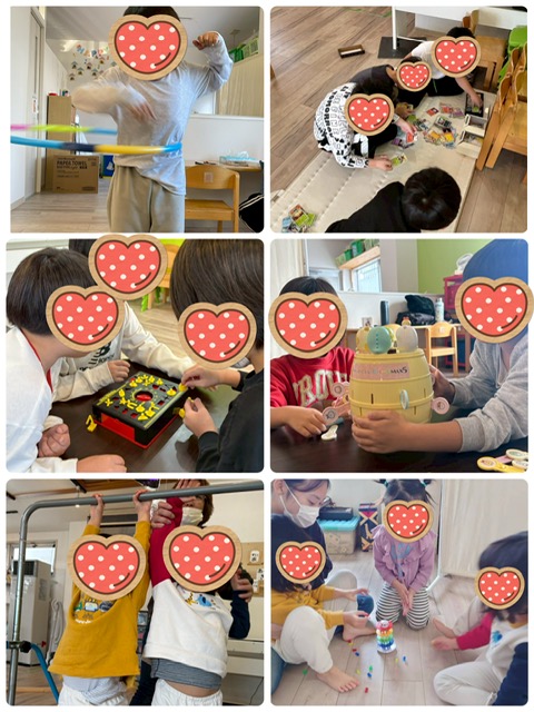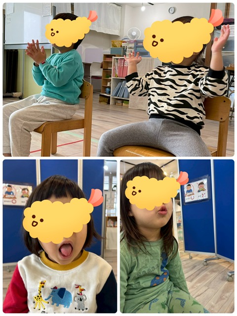 写真にはないのですが大きい子たちはそこから更に正しい言葉の使い方などSSTに繋がっていく内容の取り組みをしております。