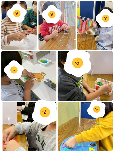 やり始めた頃はビーズを紐に通すこともままならない所から、一つ二つと数を重ねていき、今ではとお~っても長く集中して取り組めるようになったんですよ🥹